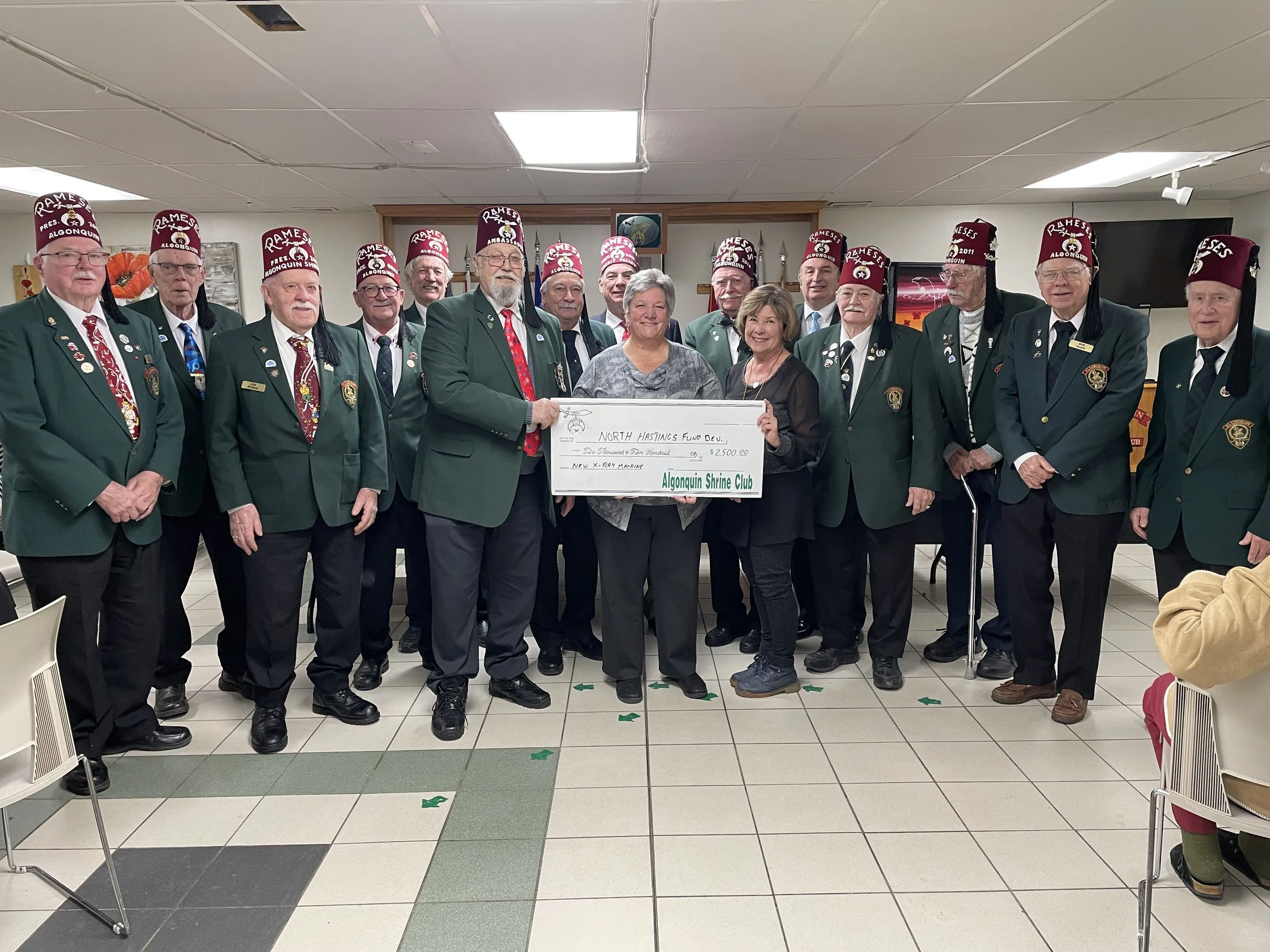 2. Algonquin Shriners donate $2,500 in support of the X-Ray machine for North Hastings Hospital.